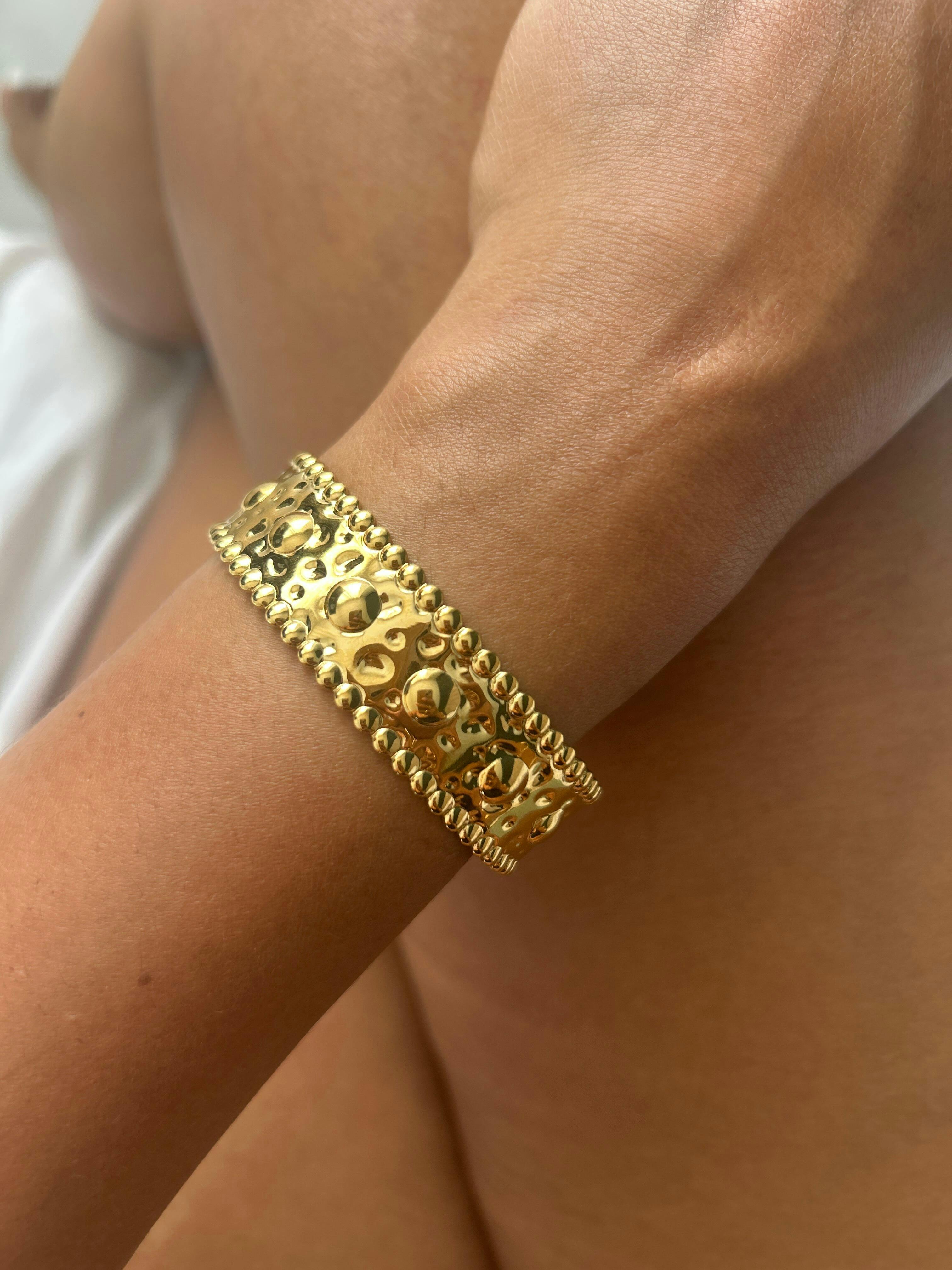 Bracelet jonc aspect métal texturé avec motifs en relief. En acier inoxydable.